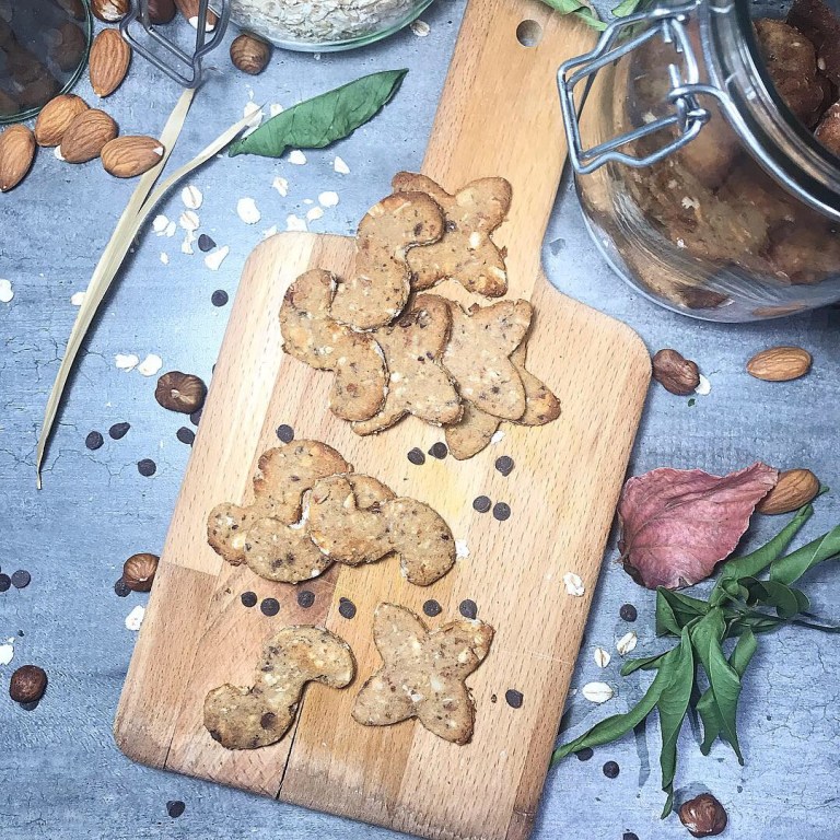 Grâce aux céréales (avoine, lupin, sorgho), aux graines de lin, aux oléagineux (amandes et noisettes), ces biscuits sont riches en fibres, en protéines, en fer, en magnésium, en vitamines et minéraux et en acides gras monoinsaturés (le fameux bon gras ).